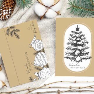 Zum Verkauf stehen ca. 350 Sets an hochwertigen Weihnachtskarten, wahlweise in Rot oder Beige, jeweils in verpackten Sets.