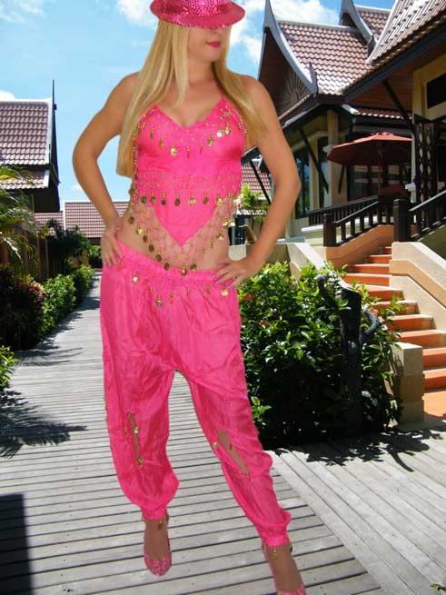 Damenmode – Bauchtanzkostüm Mit Münzen und Perlen verziert. 2 teiler Hose und Top. Einheitsgröße: 36 – 42. Material: 100% Polyester. Handwäsche In verschiedenen Trendfarben. Verkaufseinheit: 12 Sets Setpreis: 6,75€.