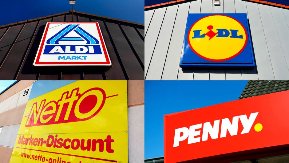 Paletten voller Produkte von den Discountern Aldi, Rewe, Lidl, Penny sowie Wenko.