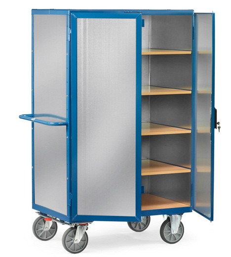 Werkstattschrank für Gabelstapler zum umsetzen. Seitlich oder von vorne kann der Stabler reinfahren und den Werkstaatschrank versetzen.